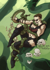 I’m super into seeing fit men having their clothes torn off by snakes. Or, in the case of these pinups featuring cis men doing stereotypically cis men things but in a feminine pinup style, why did they have to ruin it by making little o-faces? Why couldn’t they have cute smirks instead? I mean I think this artist has his finger on the issue more than some others, but goddamn it, I just want to see the fact that yeah, some women actually ARE visual and DO like looking at naked men, validated.